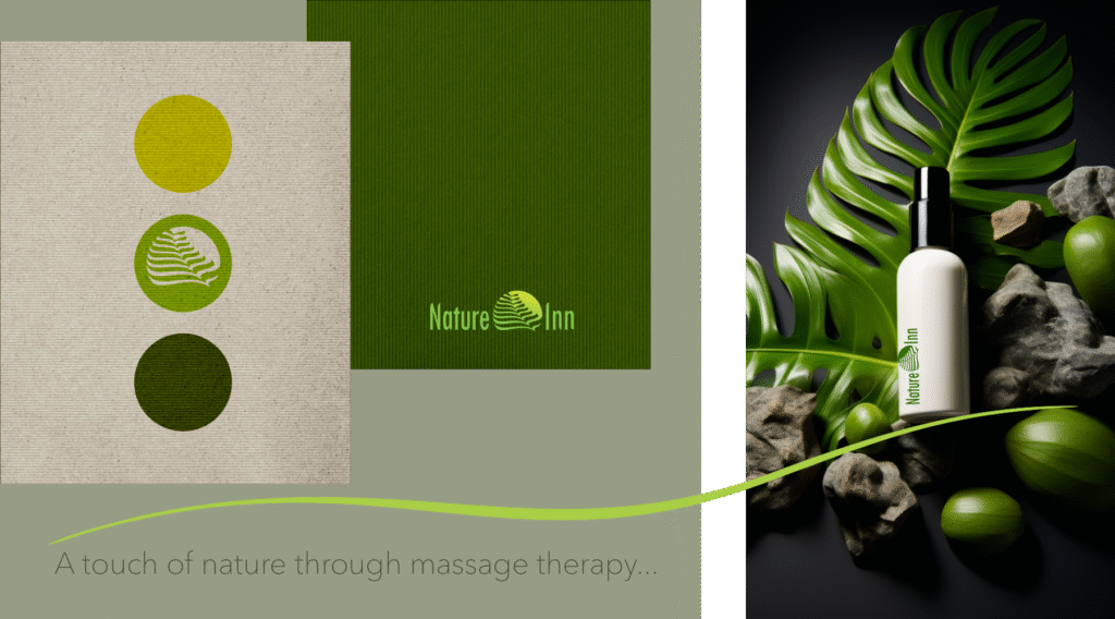 Logo concept for the massage salon Nature Inn – a sanctuary where the human being comes first: their well-being, inner balance, and harmony between body and mind.The aim is to visually express a strong connection with nature and its comfort, creating an atmosphere of warmth, serenity, and overall well-being.